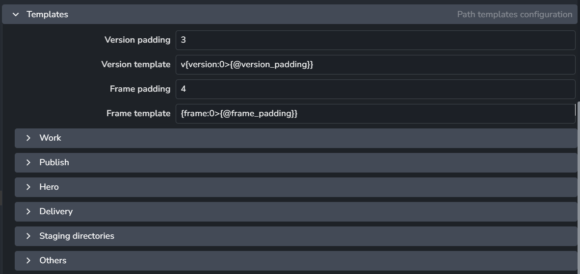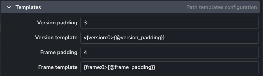 It's highly recommended not to change the default version and frame templates because many parts of the pipeline expect their default template. For example, since it's expected that all versions start with a
