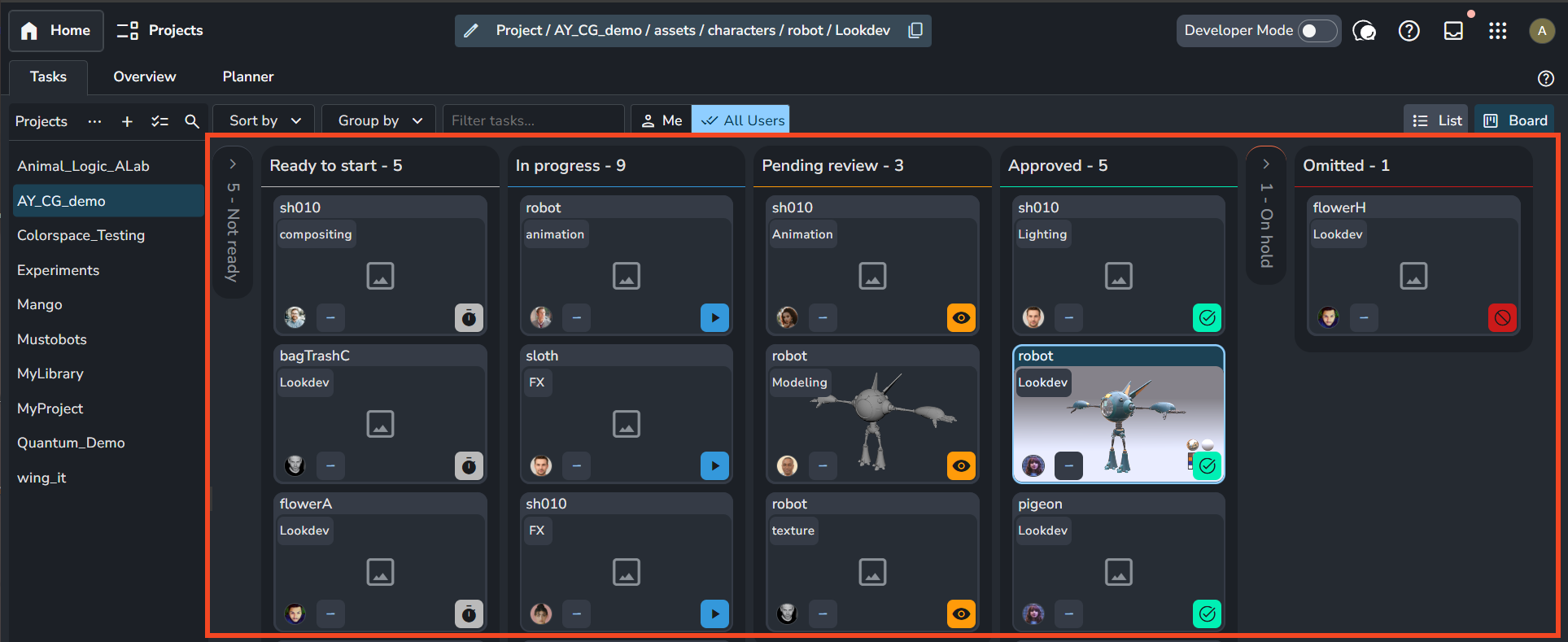 The order of statuses in the project anatomy is crucial because it directly controls how they are displayed across the AYON platform. For instance, the order you set will be the exact order you and other users see.
