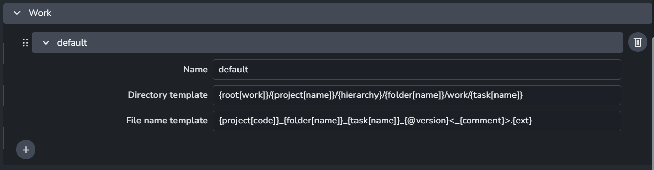 This template defines the work directory where the Workfiles tool will save workfiles. This is also referred to as the work area for a particular task.