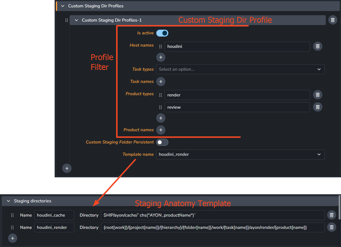 To specify custom staging locations, set them in the Core Add-on settings' custom staging profiles: ayon+settings://core/tools/publish/custom_staging_dir_profiles