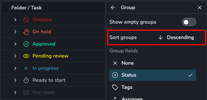 • Group Sorting (⚑Power Feature): You can now specify the grouping order, ascending or descending.