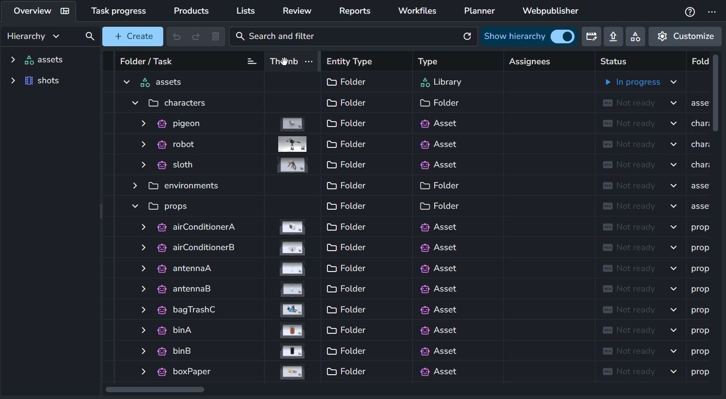 Folders and tasks are now much easier to identify at a glance. AYON now pulls the colors defined in your Project Anatomy for folder and task types and applies them to their respective projects.