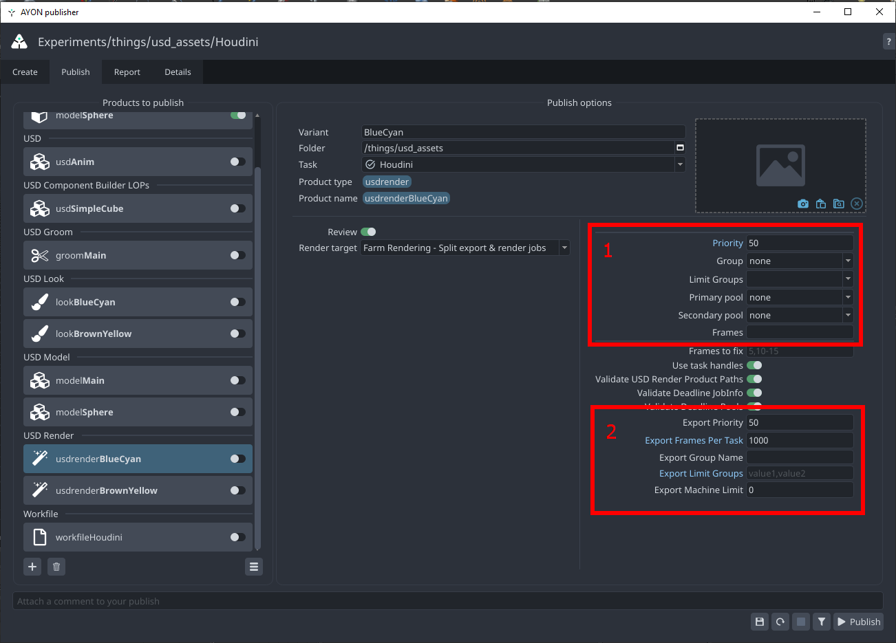 If you prefer using Deadline ROP, consider alternative options for manual publishing, such as the Standalone Tray Publisher.