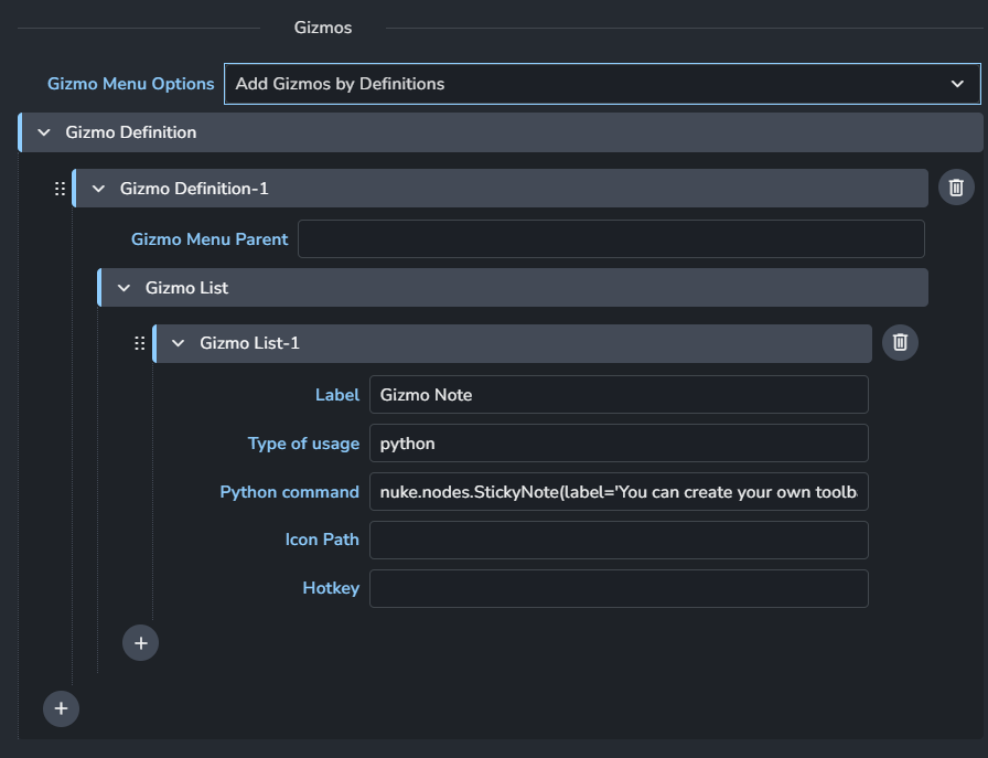 • +: Add More gizmo Definitions