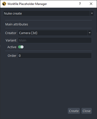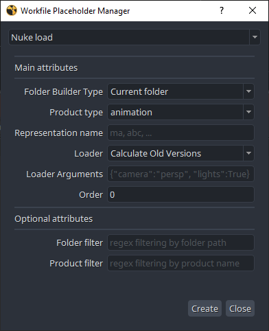 This action builds the current workfile, replacing all placeholders with the corresponding Nuke nodes.