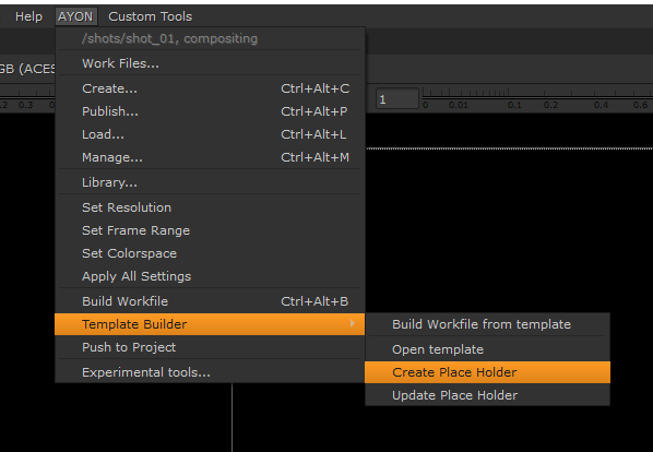 From AYON menu, select Template Builder > Create Place Holder.