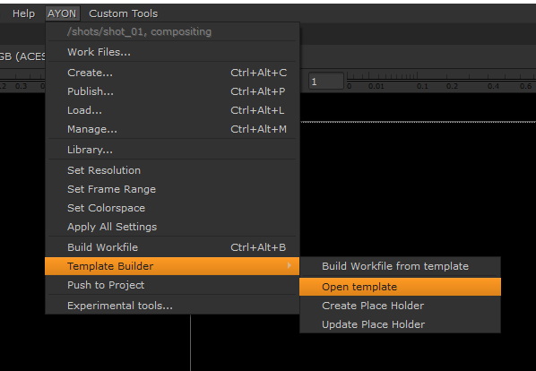 From the AYON menu, select Template Builder > Open Template.