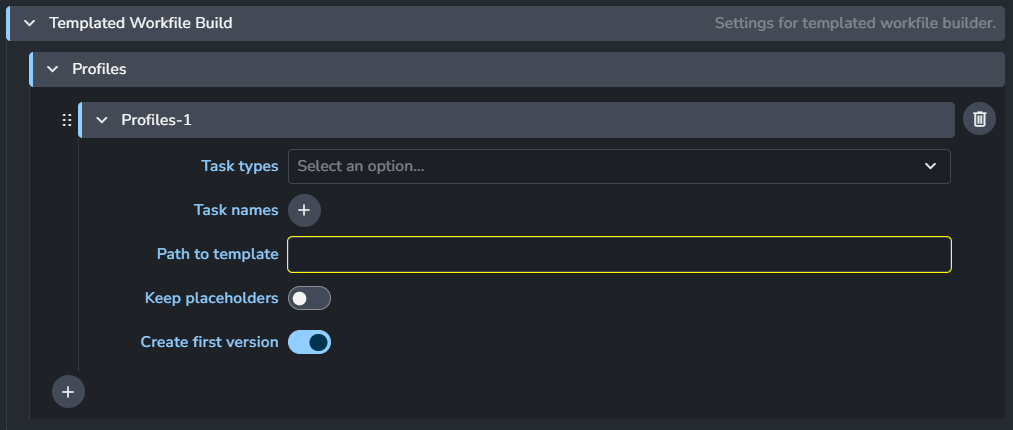 Once you have a template workfile, you can add it to your settings. This is typically done by adding a profile in the Templated Workfile Builder setting.