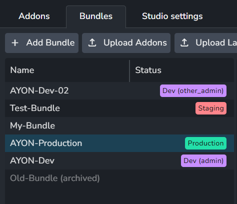 A bundle is a collection of AYON integrations (Addons) used in your pipeline.