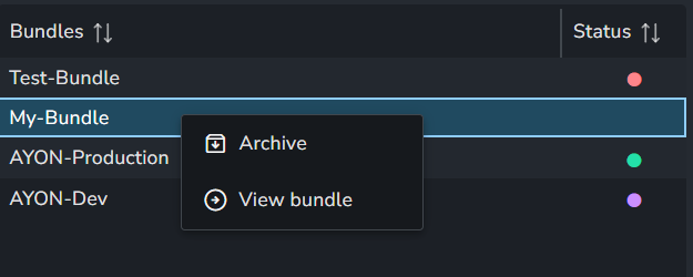 Archive Bundles: Archives the selected bundles.