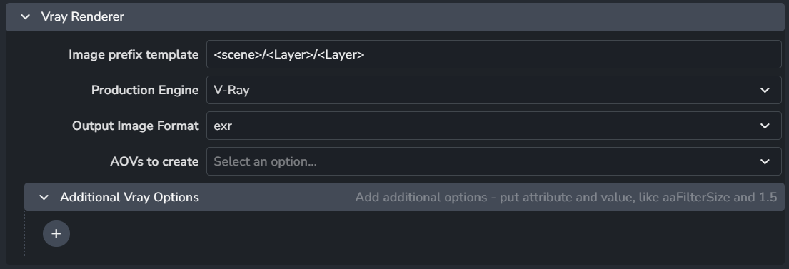 Additional Vray Options: Add additional options - put attribute and value, like attribute