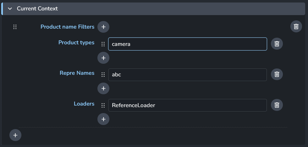 Provides the same filtering options as the Current Context, allowing you to apply filters for linked folders or assets.