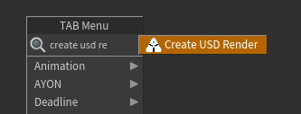 Create USD Renderfrom the tab menu.