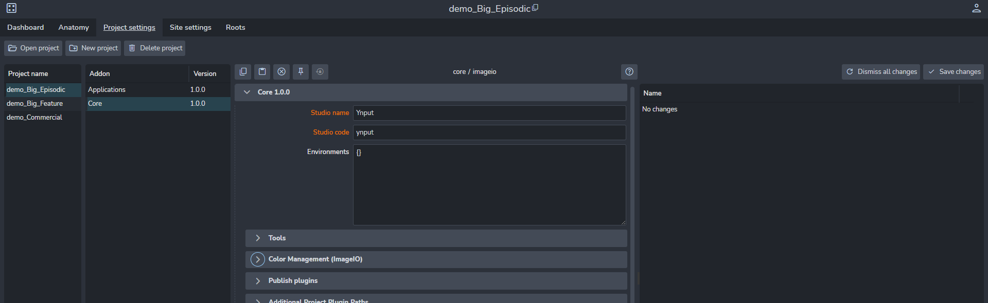 Project settings can have project specific values. Each new project is using studio values defined in studio settings but these values can be modified or overridden per project. Refer to Settings related to Working with settings for more details.