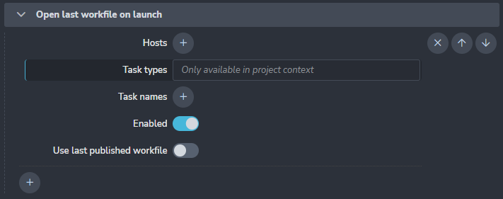 hosts- Host from which publishing was triggered.["maya", "nuke"]tasks- Current task.["modeling", "animation"]