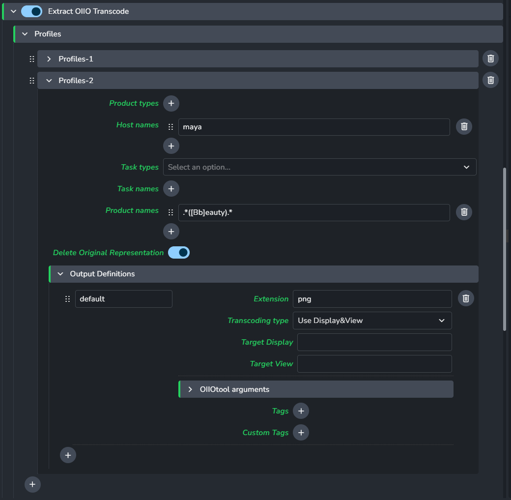 Filtering by custom tags -> this is used for targeting to output definitions from other extractors using settings (at this moment only Nuke bake extractor can target using custom tags).