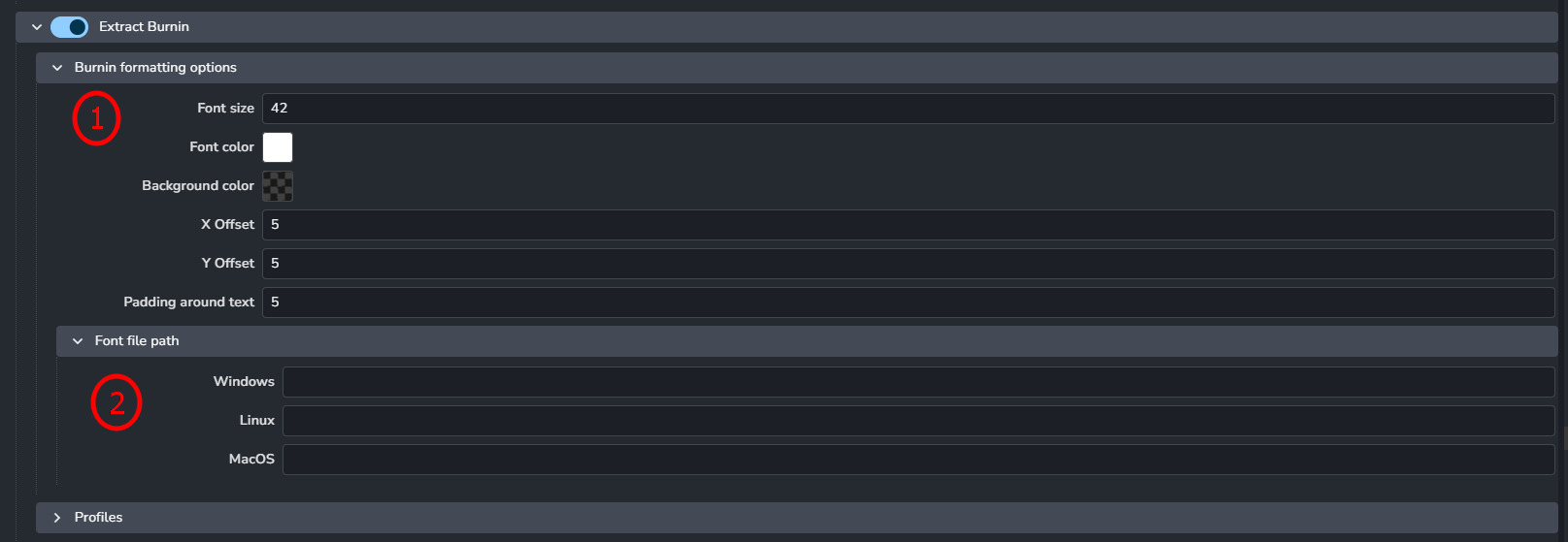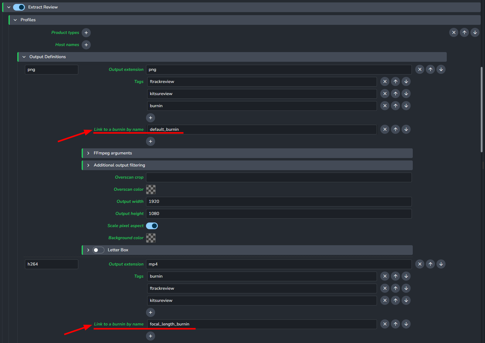 You can link Extract Review profiles to a specific burn-in by using its name. However, you're limited to choosing among burn-ins that are within the same burn-in profile.