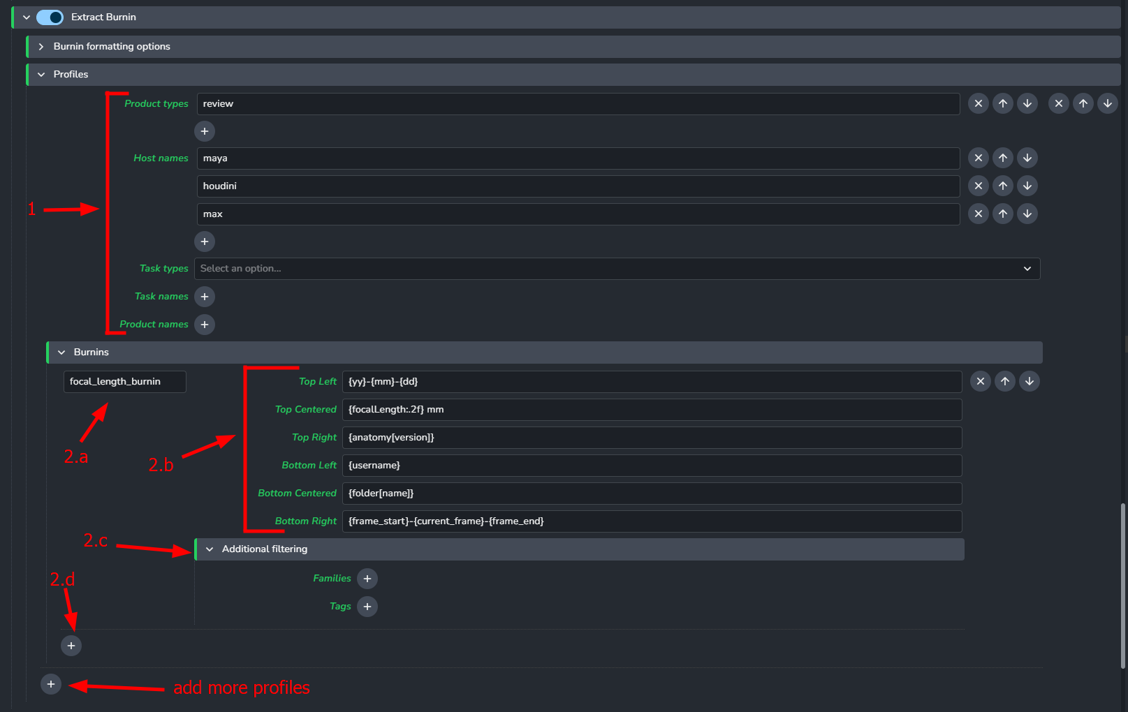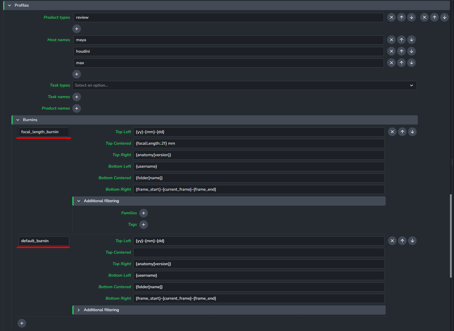 c. Additional Filtering: Add extra filters to manage the use of multiple burnin definitions effectively.