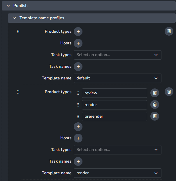 For example for render profile you might want to publish and store assets in different location (based on anatomy setting) then for publish profile. Profile filtering is used to select between appropriate template for each context of published products.